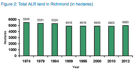 And even though the population of Richmond has increased by about 75,000 since 1989, the ALR within the city has actually increased slightly since then.